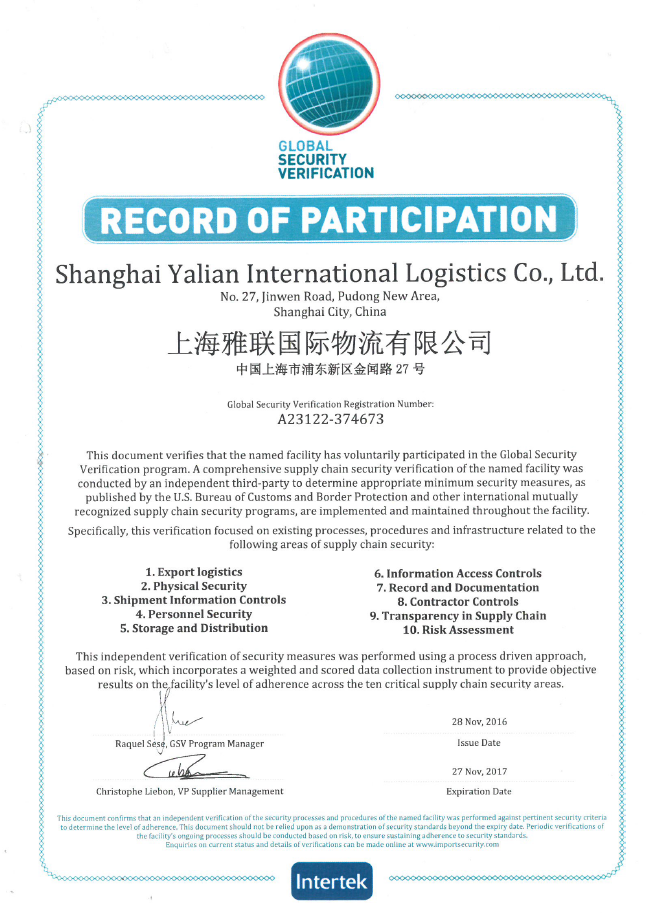 - 上海雅聯國際物流有限公司